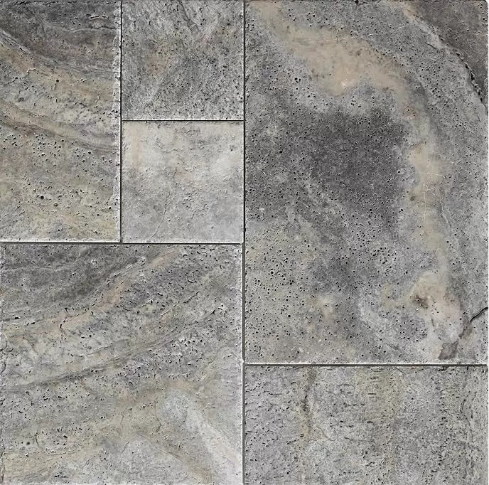 Silver travertine tiles combine classic beauty with versatility; these tiles can be used on floors, walls, and is available in decorative mosaics. With a vein cut look that brings out the silver, whites, and creams you can transform any space with sophistication.